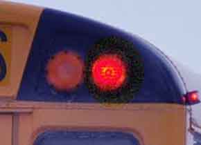 You must stop when you are following or meeting a school bus or church bus stopped on the road while the stop signal arm is extended and displaying flashing red lights. Remain stopped until the stop signal is retracted and red lights are turned off.