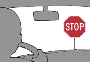 A stop sign has eight sides and is red with white letters. It means you must come to a complete stop. Stop at the marked stop line or, if none, at the point just before the intersecting street. If there is a crosswalk, you must come to a complete stop before entering it. You may proceed only after yielding to all pedestrians and vehicles.