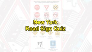 Just like the real New York state examination, this practice test pulls four of the 16 road signs that you must recognize and understand for your DMV test.