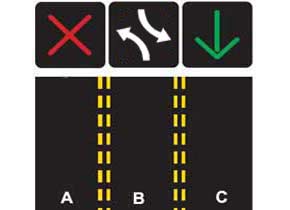 - Red X: Never drive in a lane marked with a red X signal.